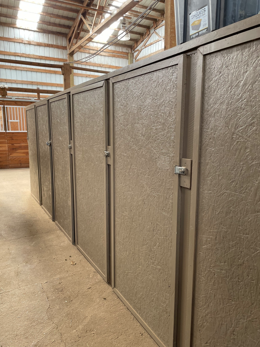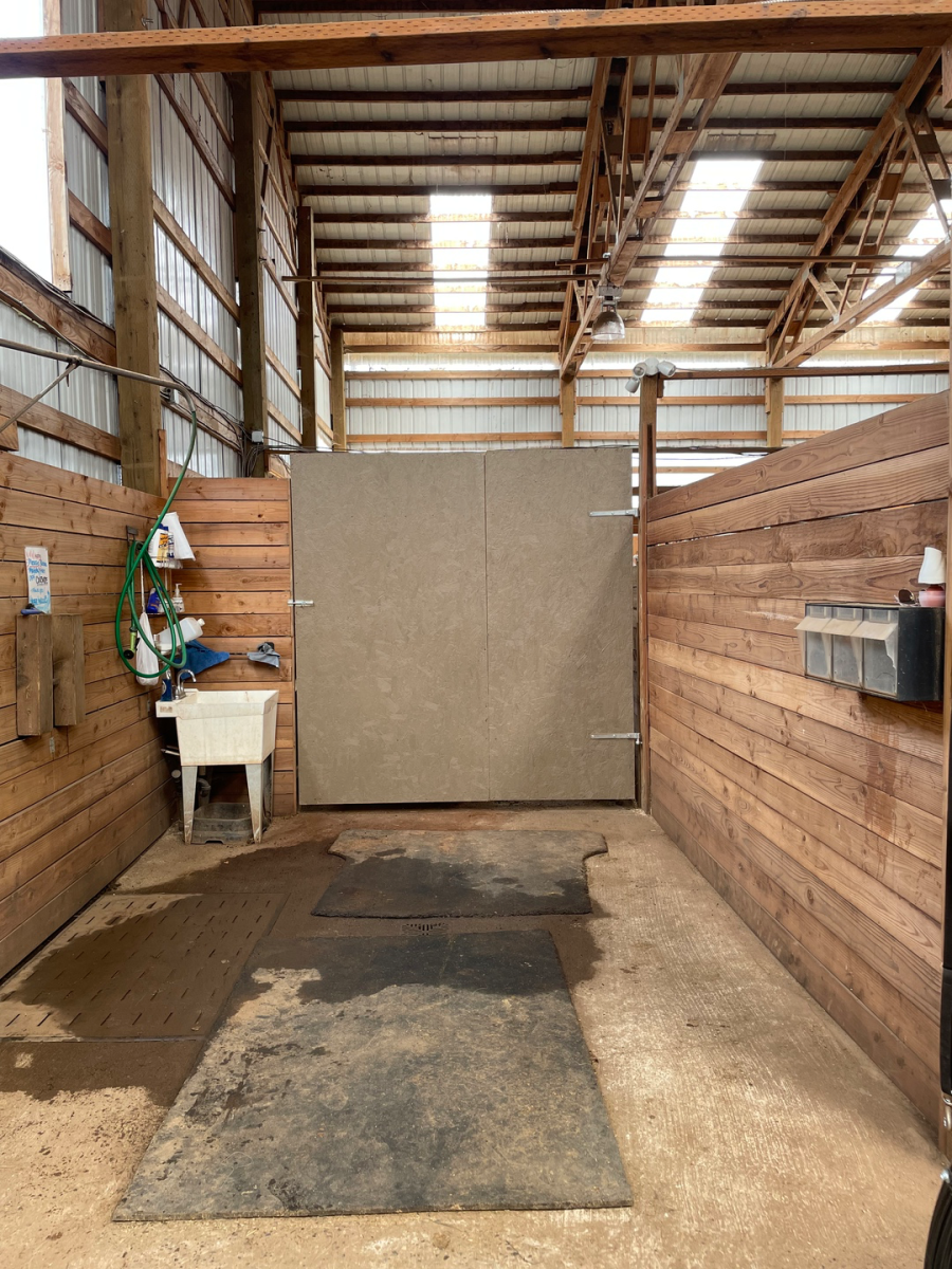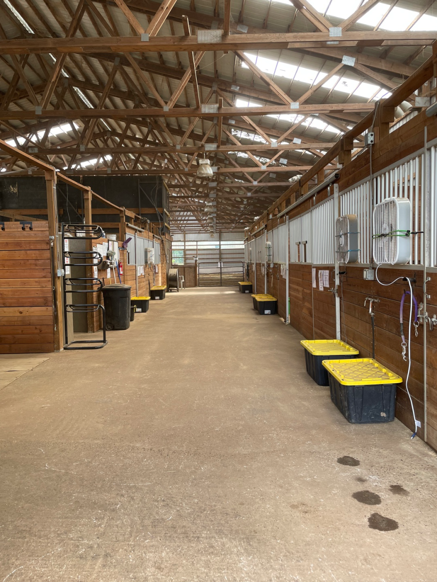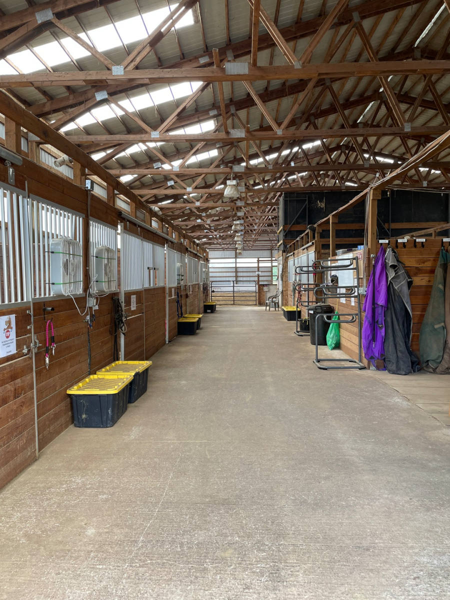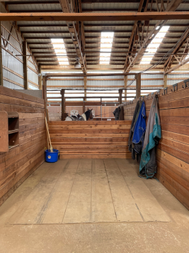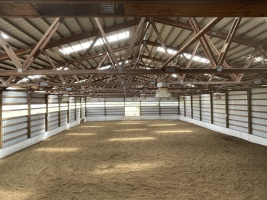 We have a 70x120 indoor arena with lots of natural light, outdoor sand arena, two round pens, grooming bay, cross-ties, hot/cold washrack, upstairs viewing area, paddocks for turn-outs and tack lockers. Stalls are 12x12 and fully matted. Trailer parking is also available.